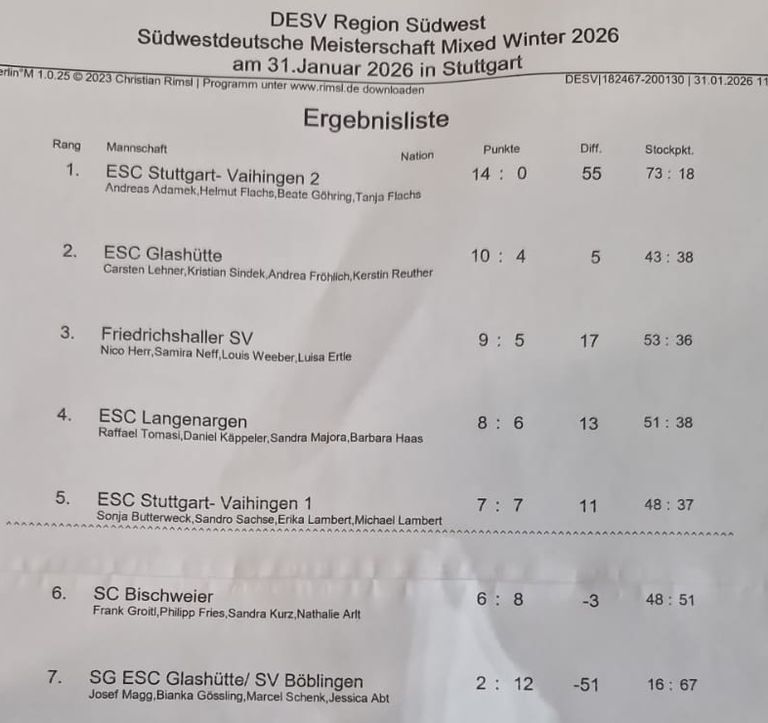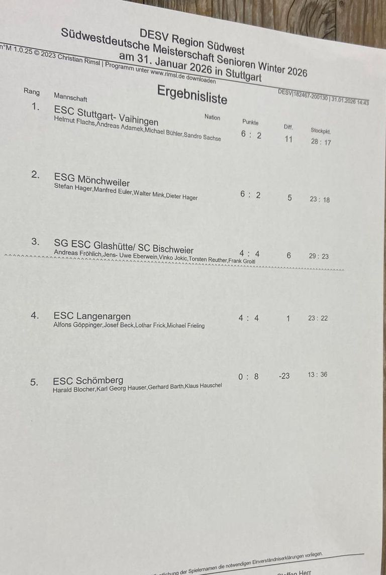 ESC Langenargen beim den Südwest-deutschen Mixed+Seniorenmeister-schaft in Stuttgart.